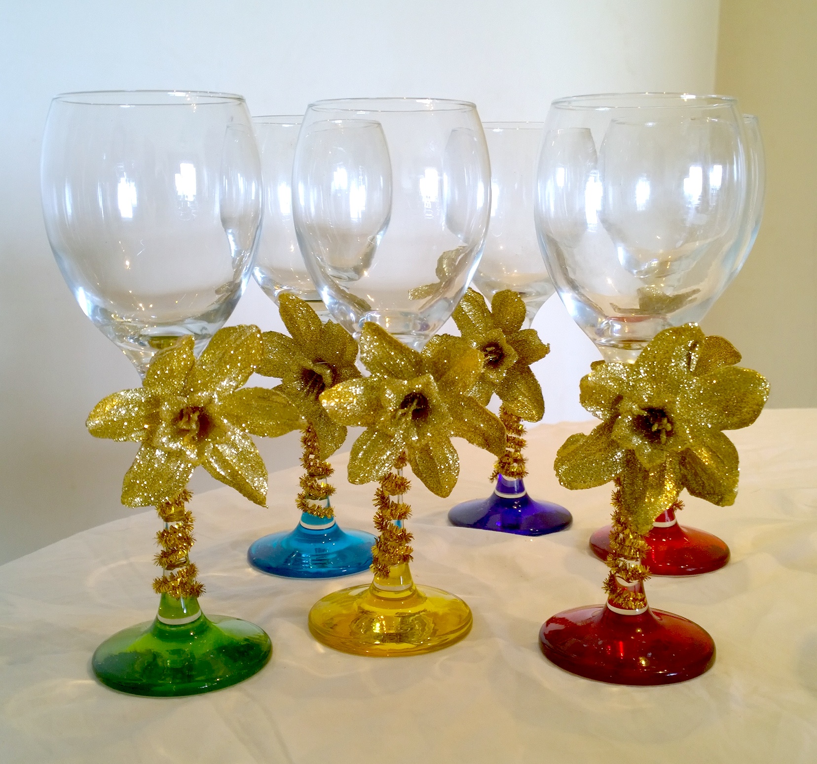 I started decorating the glasses with whatever I had.