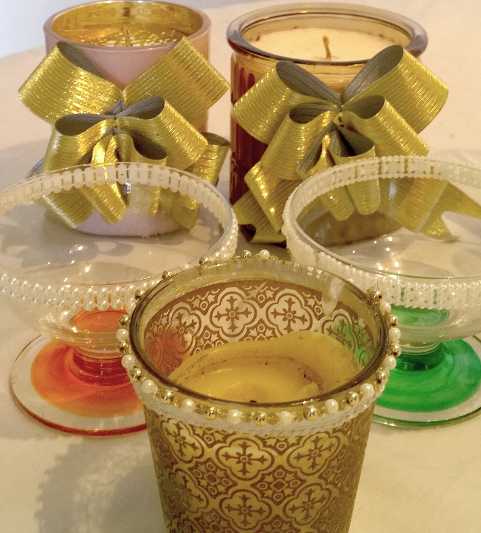 First I collected all the pretty glassware I could find in our homes in all possible shapes and sizes.