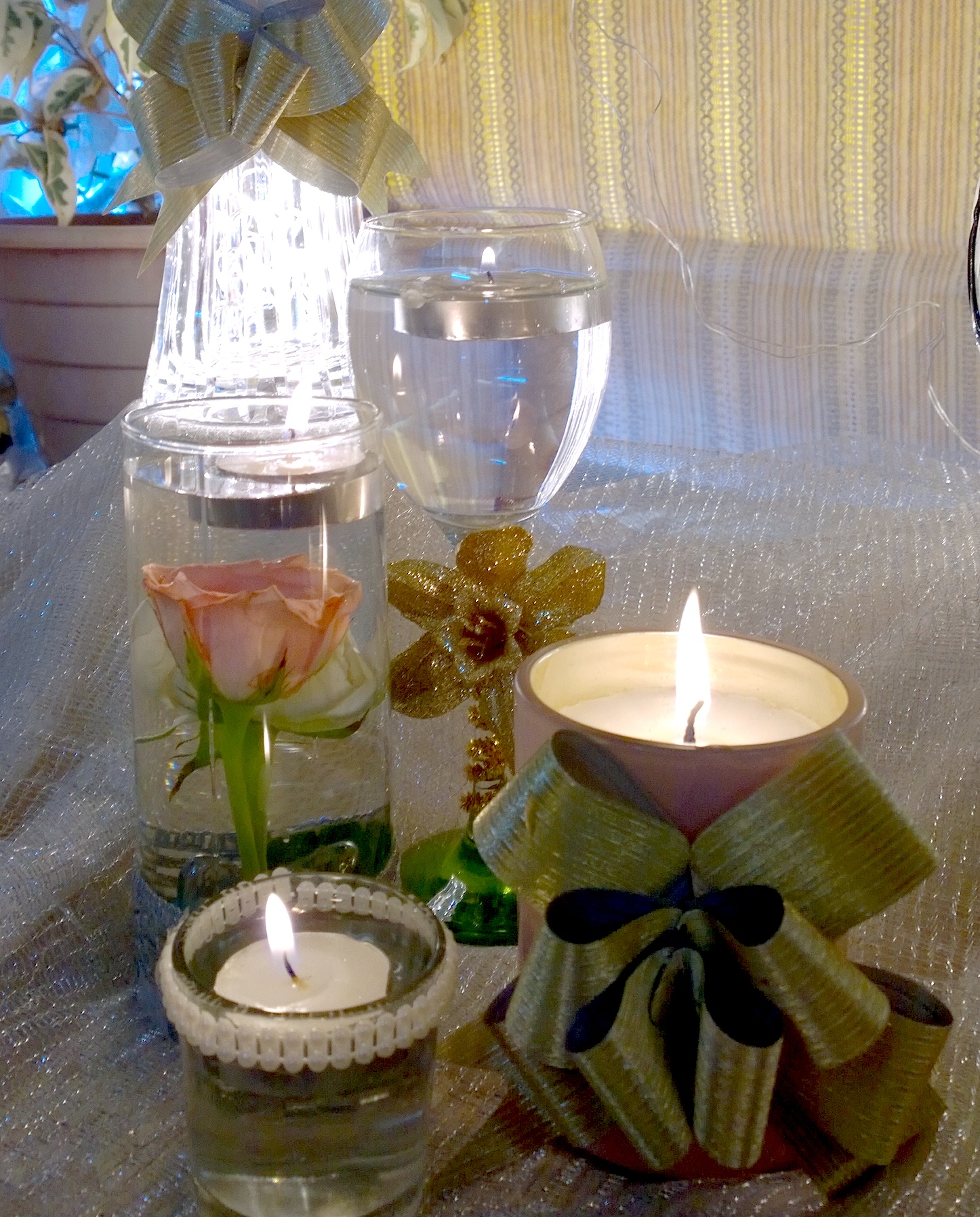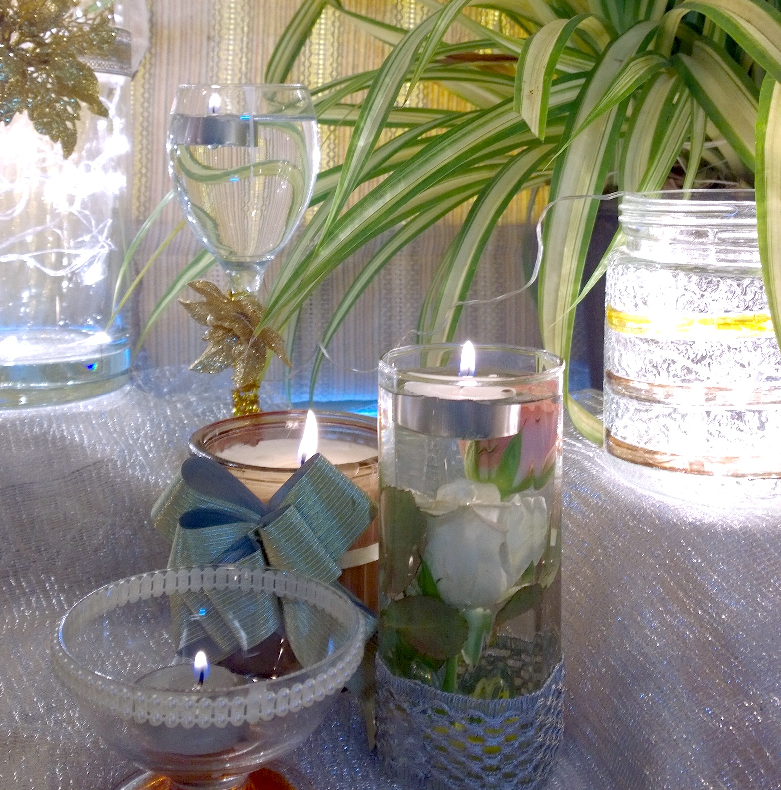 We filled up the glasses with water and floated candles in each one of them.